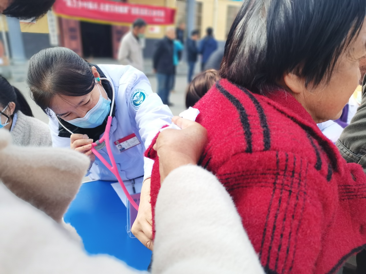 义诊项目包含免费诊疗心脑血管、呼吸、消化、内分泌、全科医学、营养、疼痛、眼科、康复医学、外科及其他常见病,现场免费健康体检等。医疗专家还走访了十户因病致贫的村民,为病患村民进行细致的问诊和答疑解惑,并发放免费常用药品。